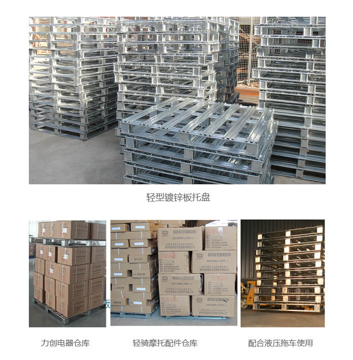 輕型B型鍍鋅托盤 產(chǎn)品用途: 本產(chǎn)品采用上海寶鋼大鋅花0.5—1.0mm厚的鍍鋅板軋壓變形,優(yōu)點質(zhì)量輕承重好,焊點處涂銀粉油漆或植物桐油防止焊點生銹。應(yīng)本產(chǎn)品熱鍍鋅層面工藝,防銹能力非常強,廣泛用于輕工業(yè)制造,如冷鏈、食品車間生產(chǎn)、酒水制造,電子制造倉儲與周轉(zhuǎn)。對比木板托盤免熏蒸,常作為隨貨底托,隨產(chǎn)品一次性出口。提示:不建議上貨架,如上貨架,主材厚度1.2mm。